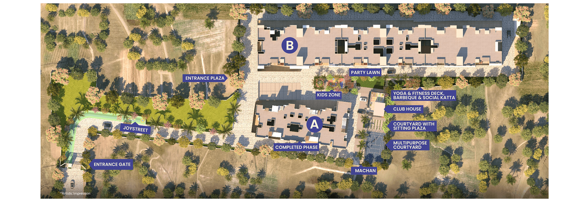 The website, displays artistic impression images, amenities and illustrations proposed for the entire layout and not only for the registered project under MAHARERA. We request all to visit MAHARERA website to get more detailed information about a current offering. We do not wish to misguide any of the customers visiting the website.
